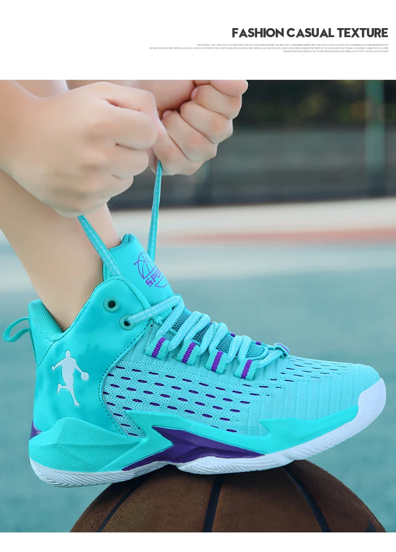 These high-performance basketball shoes are built for athletes who demand both style and function on and off the court. Designed with a breathable and height-increasing structure, they offer superior ankle support and stability during intense play. The lace-up design ensures a secure fit, while the durable rubber outsole provides excellent grip and traction on various court surfaces.