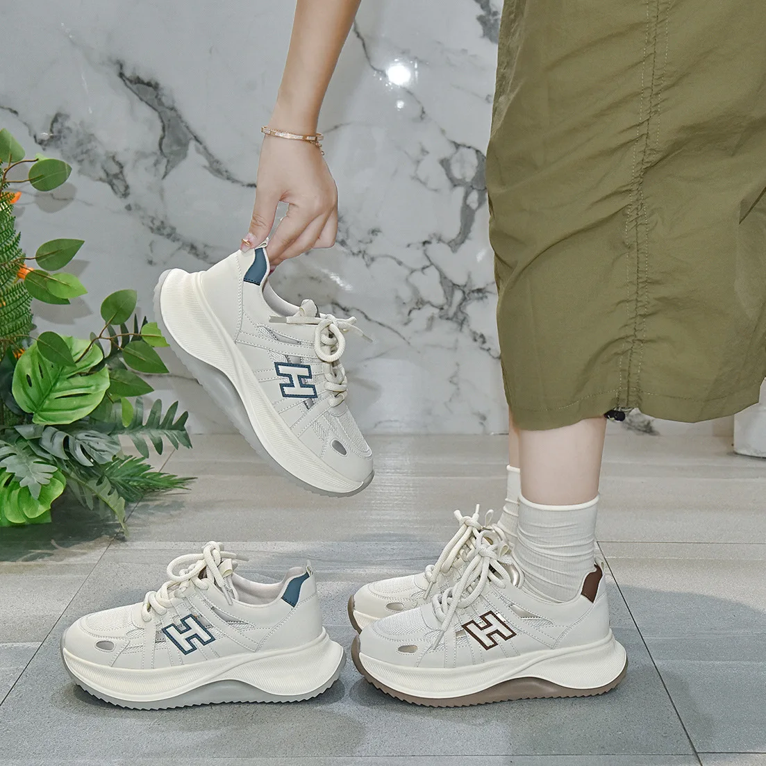 Step out in comfort and style with these Women’s Thick-Soled Strap Sports Shoes, perfect for cycling, hiking, or casual travel. Featuring a breathable mesh and genuine leather upper, they keep your feet cool while providing durability for active adventures. The round-toe design and medium flat heel ensure stability, while the microfiber insole adds extra cushioning for all-day comfort.