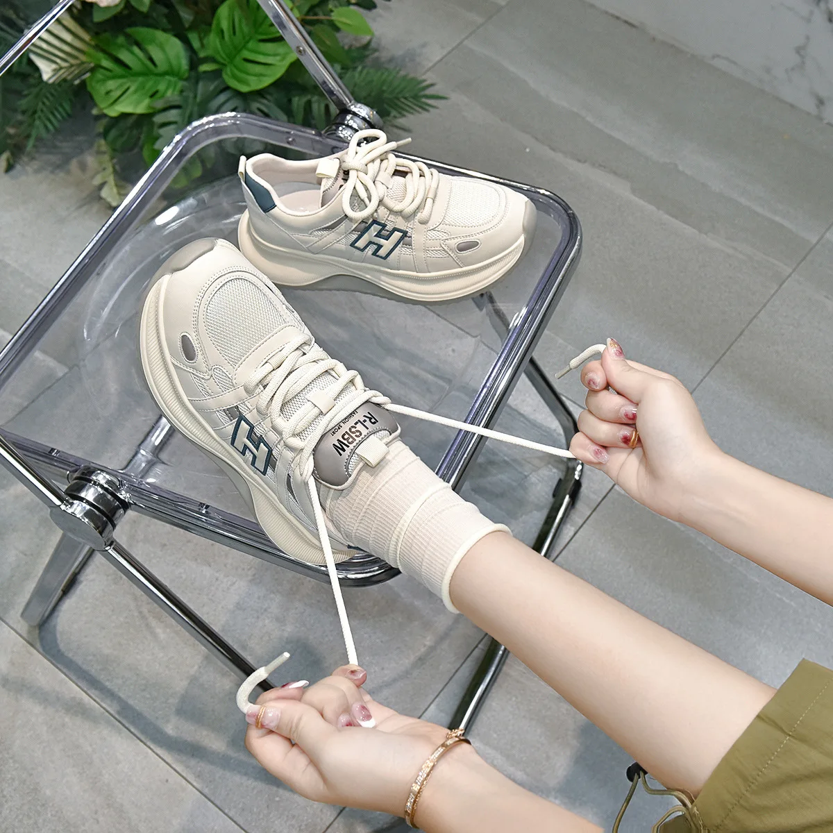 Lightweight and wear-resistant, these versatile sneakers are ideal for spring, summer, and autumn outings. The secure lace-up closure and stylish solid-color design make them a practical yet fashionable choice for women who enjoy outdoor activities or leisurely urban walks.
